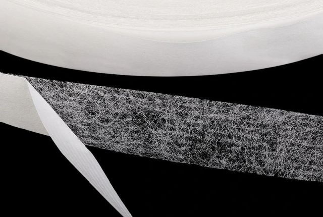 Pásky zpevňující - termoplastické: se skládají z tkaniny a úpletu. Jsou používány na zpevňování švů konfekčních oděvů, vyráběné a řezané na koso i podélně z bavlněné příze nebo také z elastických úpletů. Hodně jsou používány pro pánskou i dámskou konfekci. Pásky z termoplastického lepidla ve formě mřížky, síťky nebo filmu jsou používány na zažehlení do spodní části oděvů nebo švů, prodávané ve formě polyamidové síťky na papíře nebo ve formě průhledné pavučinky (netkané textílie). Specialní páska je ve formě filmu (průhledné blány) a používá se při výrobě oděvů jeans. Aplikace lepících pásek nepotřebuje žádná specialní zařízení, stačí žehlička s termostatem na 130°C.